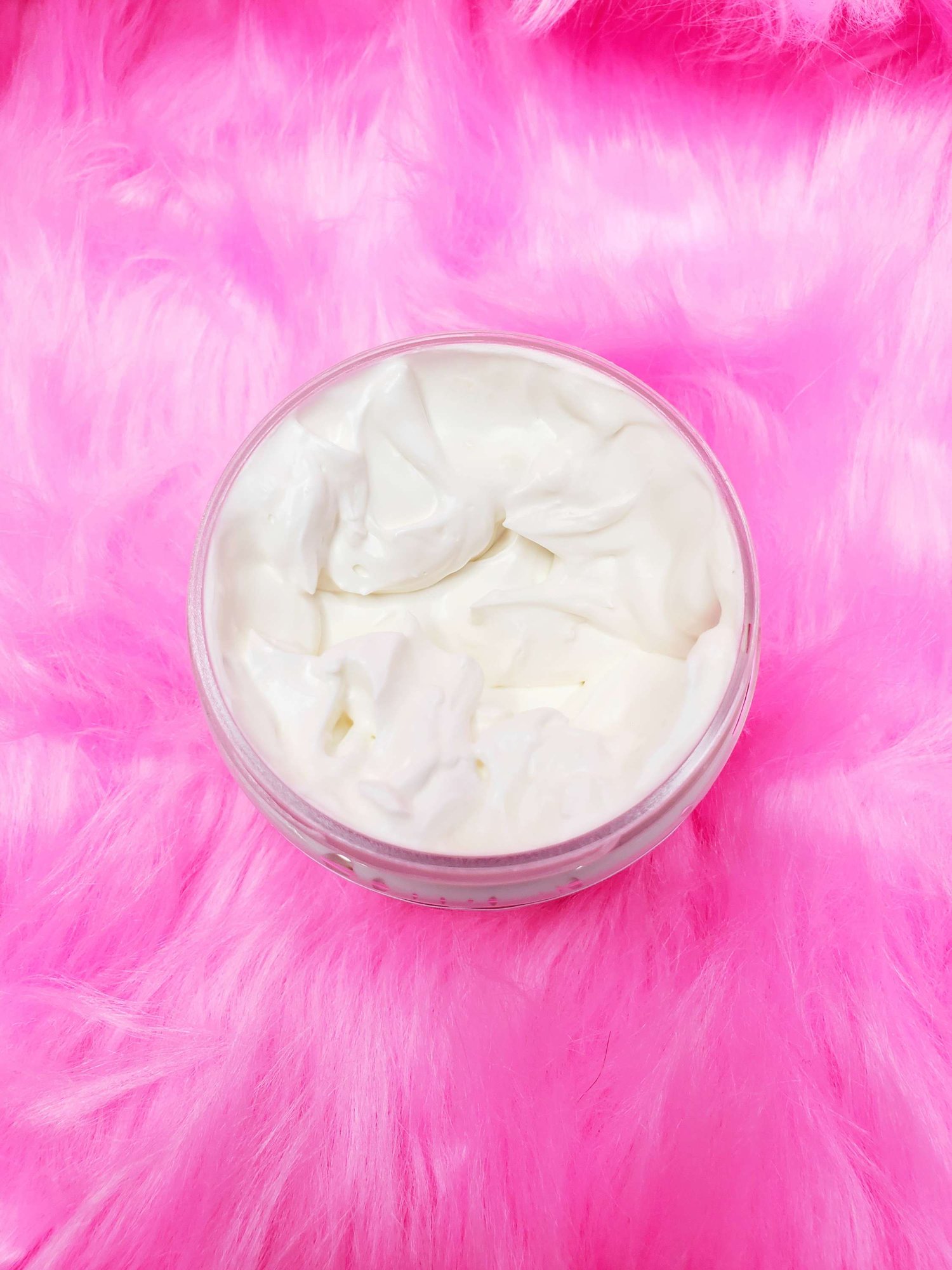 Ingredients: Shea Butter, Mango Butter, Emulsifying Wax, Arrowroot Powder, Cornstarch, Sweet Almond Oil, Vitamin E Oil, Fragrance Parfum Scent, Mica and Love