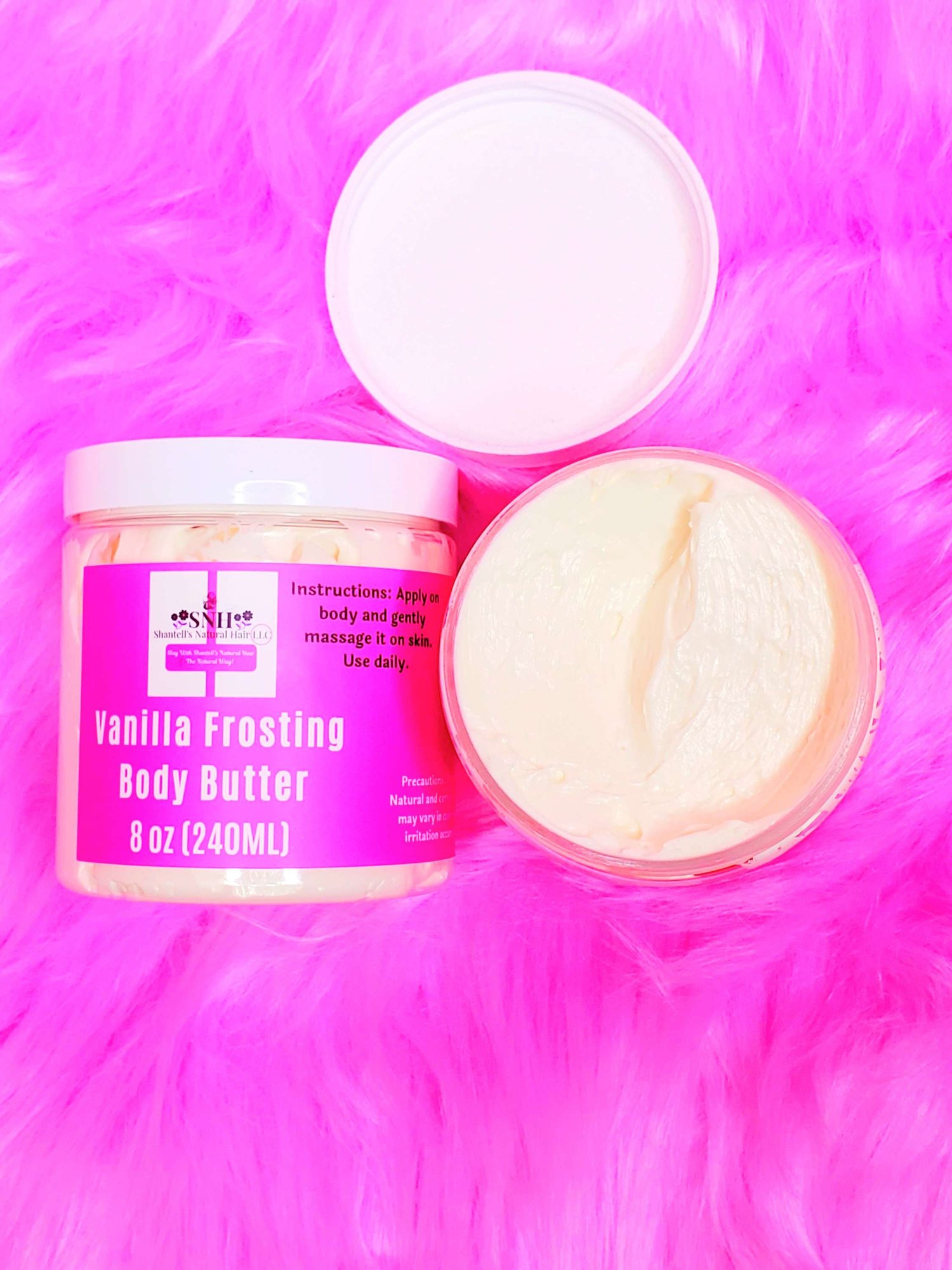 Our Vanilla Frosting Body Butter is light and fluffy. When applied onto skin it melts slowly and its very soft and moisturizing to the skin which helps you to stay fresh and smelling great all day long.